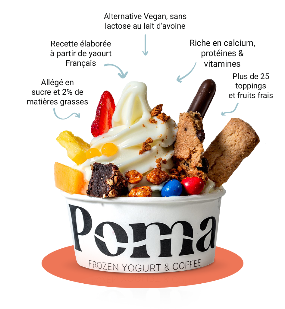 Chez POMA, notre yaourt glacé est bien plus qu’une simple gourmandise : c’est une pause fraîcheur saine et savoureuse. Élaboré à partir de yaourt français, il contient seulement 2 % de matières grasses, est pauvre en sucres et naturellement riche en protéines.
